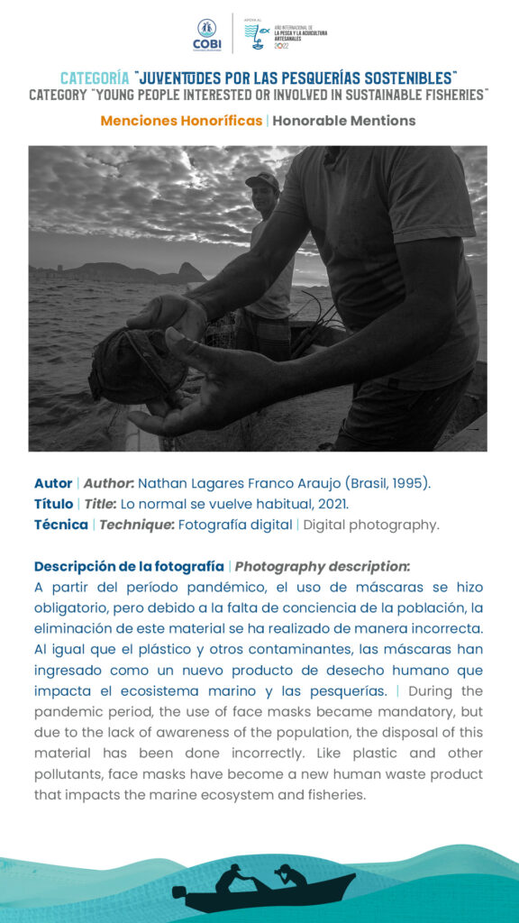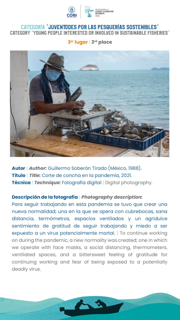 Así nace “La vida de las comunidades pesqueras frente al COVID-19 en América Latina y el Caribe”, un concurso de fotografía que buscaba conocer desde la mirada y lente de las juventudes, mujeres y hombres de las comunidades costeras, las historias, esencia y vivencias diarias de la región, durante un momento de vulnerabilidad social y sanitaria.