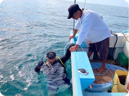 3. Capacitar a pescadoras y pescadores (más de 300 hasta ahora) en buceo autónomo para realizar monitoreos submarinos y generar datos científicos para el manejo adaptativo.